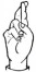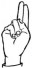 На ћирилици написано СТРАХИЊА УЛЕМЕК састоји се из 14 слова [?]. Исписано ћириличном једноручном азбуком за глувонеме: